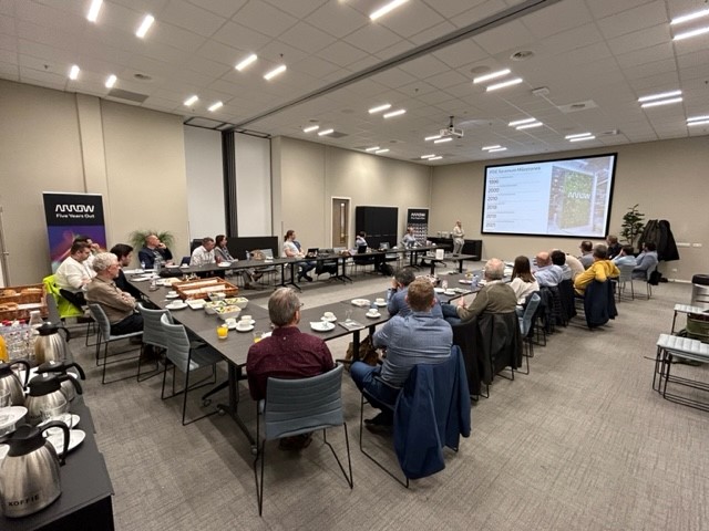 On Thursday, March 16, about 20 EMS cluster members visited Arrow Electronics. The electronics company started using a hypermodern automated warehouse near Venlo in 2022. The cluster members discussed the components market with Arrow, which resulted in a fascinating discussion. They also received an exclusive tour of the new warehouse where the members were amazed.