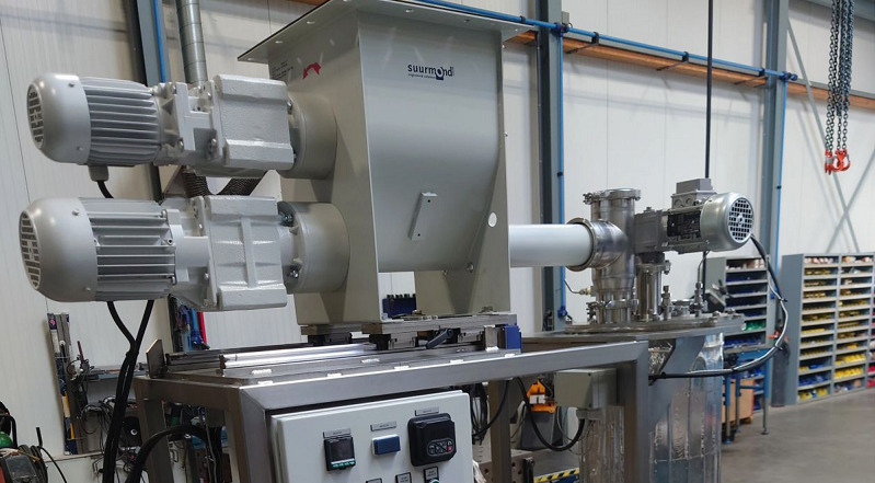 Suurmond was commissioned to design a complete process solution. Our engineers developed an integrated system in which the reactor vessel and feeder are mounted together on a single, stable frame. The feeder – supplied by the customer – is mechanically mounted on linear guides for precise and smooth axial movement. This simplifies positioning above the vessel and minimizes physical strain during operation.