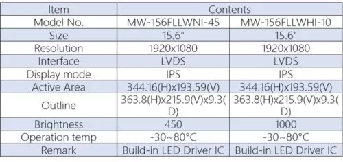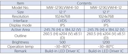 MWT introducing new series with 12.1/15.6-inch High/Normal-Brightness TFT-LCD Modules