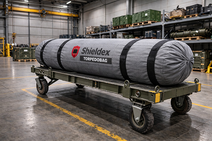 The material is manufactured from the conductive non-woven Shieldex Zeven+30, which achieves shielding performance of up to 90 dB on average in the frequency range of 300 MHz to 10 GHz. The dimensions can be custom-made to protect various types of equipment, from defense components such as torpedoes, drones, smart sensors, measuring instruments, or other sensitive electronic systems.