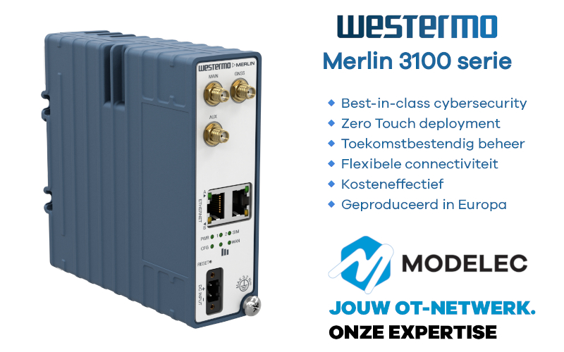 Met de Merlin 3100-serie kies je voor maximale uptime en minimale zorgen. De router is compact, robuust en eenvoudig te beheren, zelfs bij grootschalige uitrol. Dankzij lifecycle management en snelle respons op kwetsbaarheden ben je verzekerd van een toekomstbestendige oplossing. MODELEC ondersteunt je als betrouwbare partner bij advies, implementatie en beheer, zodat jouw OT-netwerk altijd voldoet aan de nieuwste eisen en je bedrijfsprocessen ongestoord kunnen doorgaan.