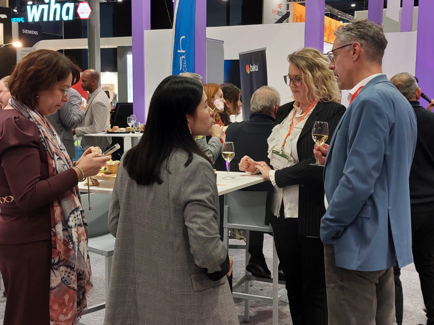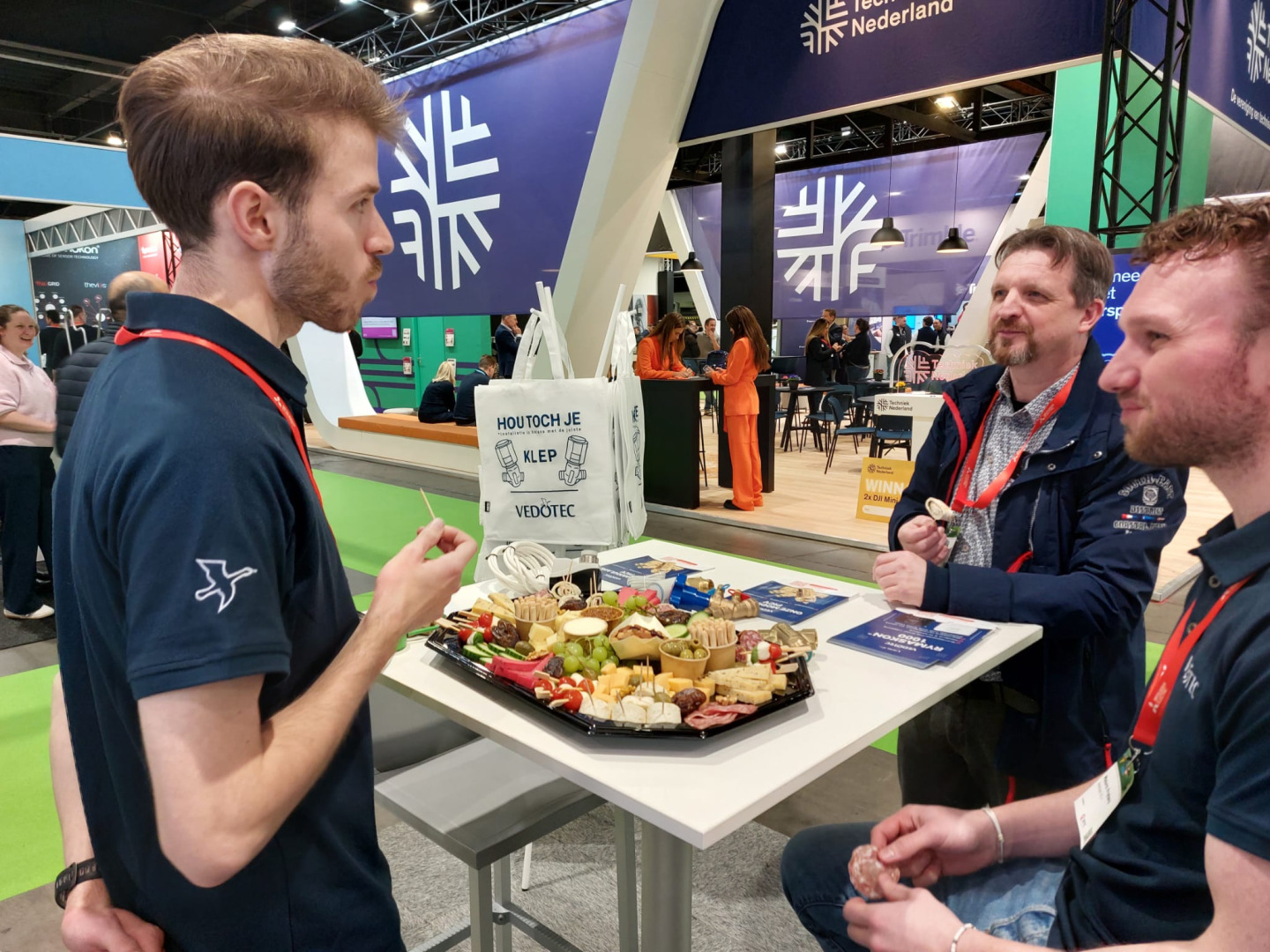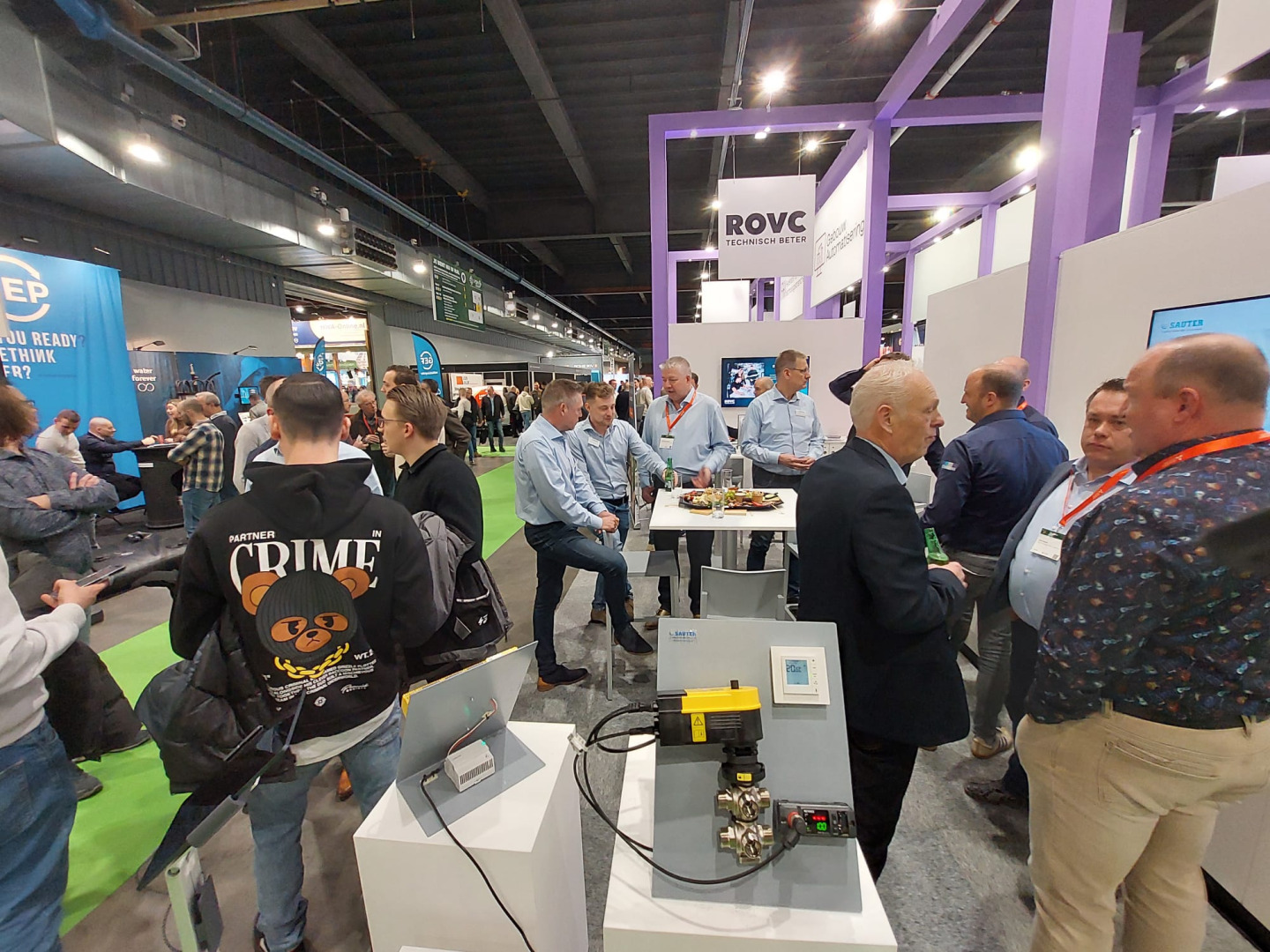 De banners en de opvallende paarse pilaren trokken de aandacht van nieuwsgierige passanten. Op de stands werd dan ook volop genetwerkt. Exposant Lars Wiersma, Key Account Manager bij Barcol-Air, heeft veel goede gesprekken gehad: “Het gaat hartstikke goed. Het is al de hele week lekker druk op de stand, maar donderdag is tot nu toe onze topdag.”