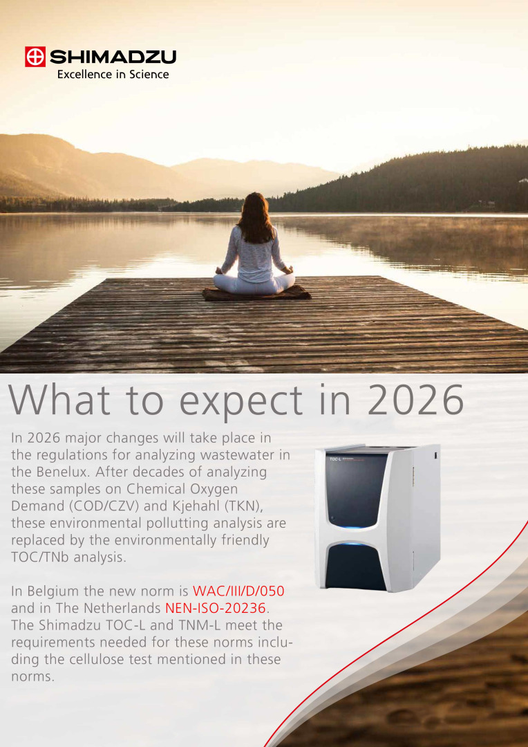 In 2026 major changes will take place in the regulations for analyzing wastewater in the Benelux. After decades of analyzing these samples on Chemical Oxygen Demand (COD/CZV) and Kjehahl (TKN), these environmental pollutting analysis are replaced by the environmentally friendly TOC/TNb analysis. In Belgium the new norm is WAC/III/D/050 and in The Netherlands NEN-ISO-20236. The Shimadzu TOC-L and TNM-L meet the requirements needed for these norms including the cellulose test mentioned in these norms.
