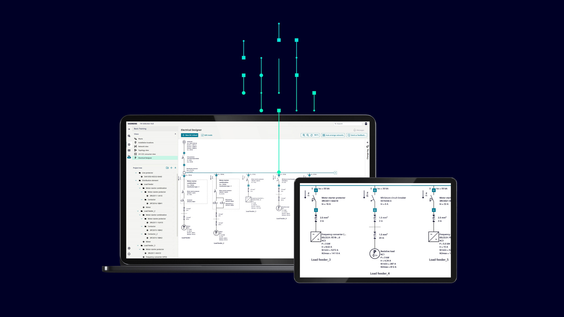 Siemens heeft de TIA Selection Tool Cloud uitgebreid met de nieuwe functie Electrical Designer (ELD) voor elektrotechnische engineering. Deze slimme software is de eerste en enige binnen de IEC-markt (toepassing van normen van de International Electrotechnical Commission) die basiskennis van elektrotechniek en normenexpertise integreert. Hierdoor is tijdrovend opzoekwerk en complex handmatig werk niet langer nodig. Electrical Designer vereenvoudigt het ontwerp van hoofdstroomcircuits door automatisch componenten te selecteren, kortsluitberekeningen te verifiëren, kabeldimensionering en alle benodigde documentatie te genereren – alles in één eenvoudig proces.